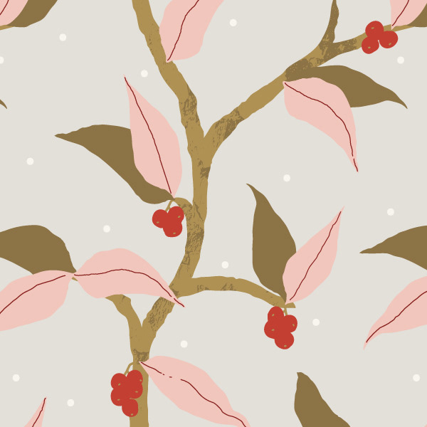 Festive patterns for the holidays that offer versatility to last the whole season long. This collection features an organic vining berry, multiple colorways of lattice, snowy dots and other botanic infused prints.